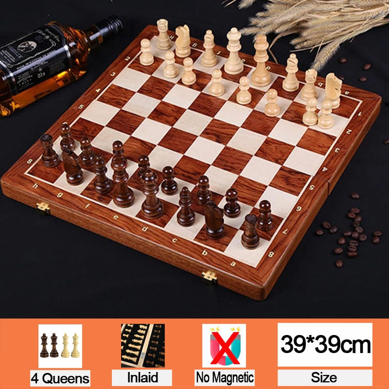 4 Queens Magnetic Chess Wooden Chess Set International Chess Game Wooden Chess Pieces Foldable Wooden Chessboard Gift Toy I55